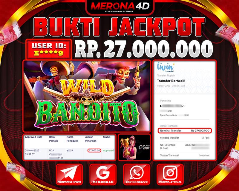 Selamat Kepada Member MERONA4D E*****9 Telah Jackpot Di WILD BANDITO