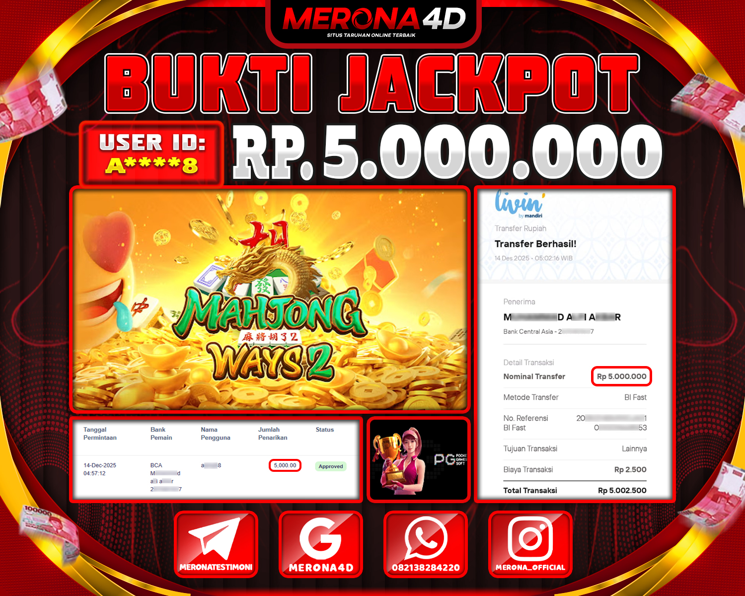 Selamat Kepada Member MERONA4D A****8 Telah Jackpot Di MAHJONG WAYS 2
