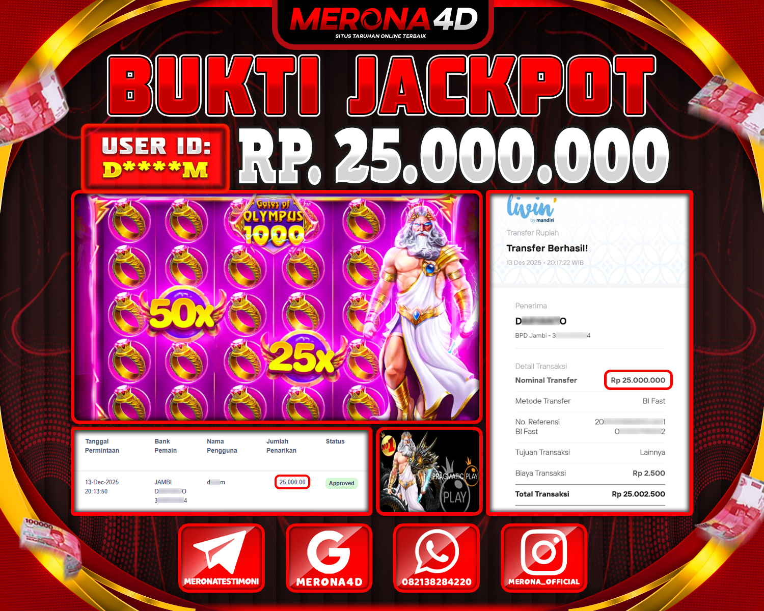 Selamat Kepada Member MERONA4D D****M Telah Jackpot Di GATES OF OLYMPUS 1000