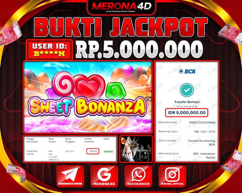 Selamat Kepada Member MERONA4D B*****H Telah Jackpot Di SWEET BONANZA