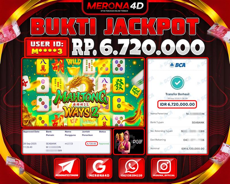 Selamat Kepada Member MERONA4D M****3 Telah Jackpot Di MAHJONG WAYS 2