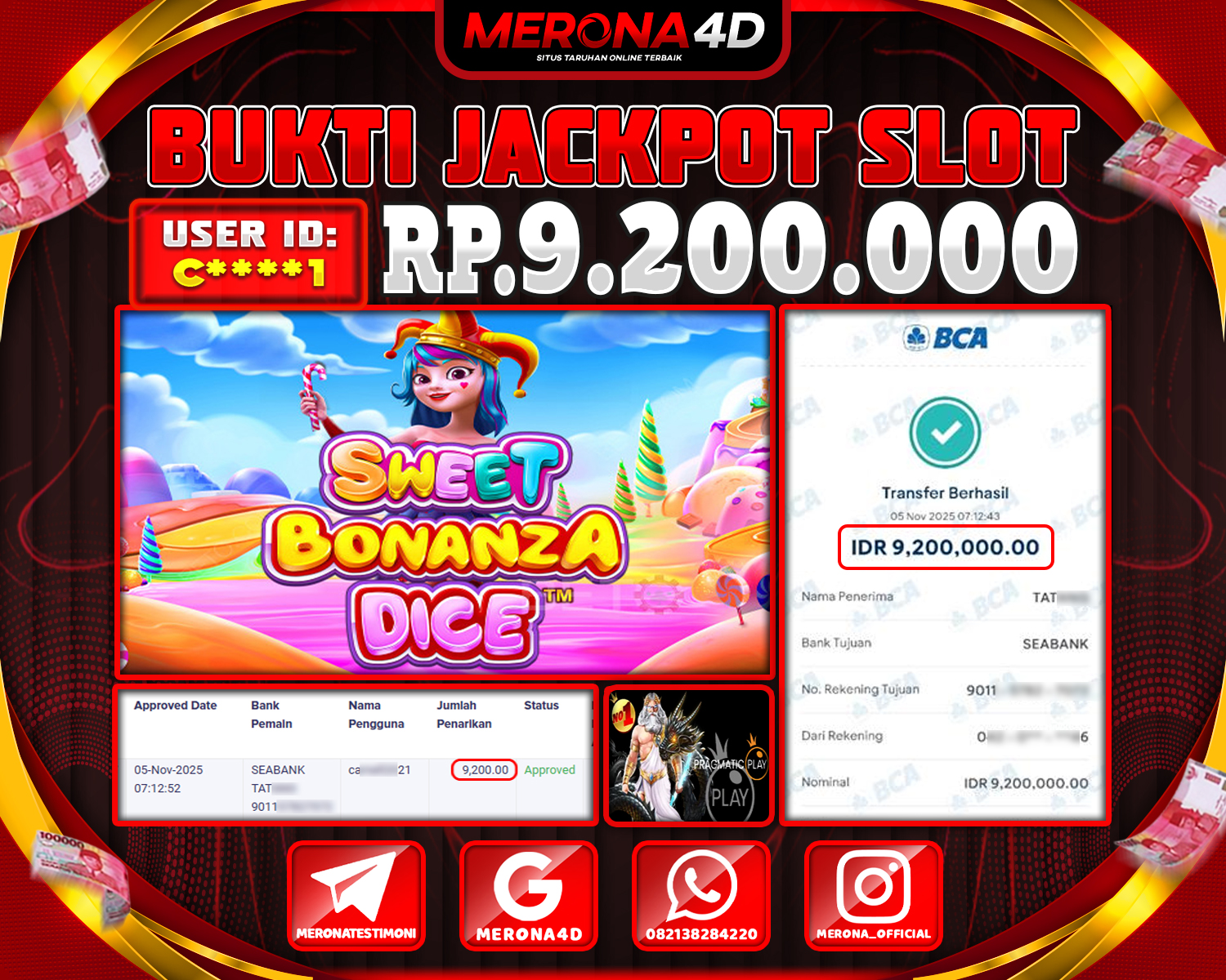 Selamat Kepada Member MERONA4D Cβ­‘οΏ½***οΏ½β­‘1 Telah Jackpot Di SWEET BONANZA 1000 DICE
