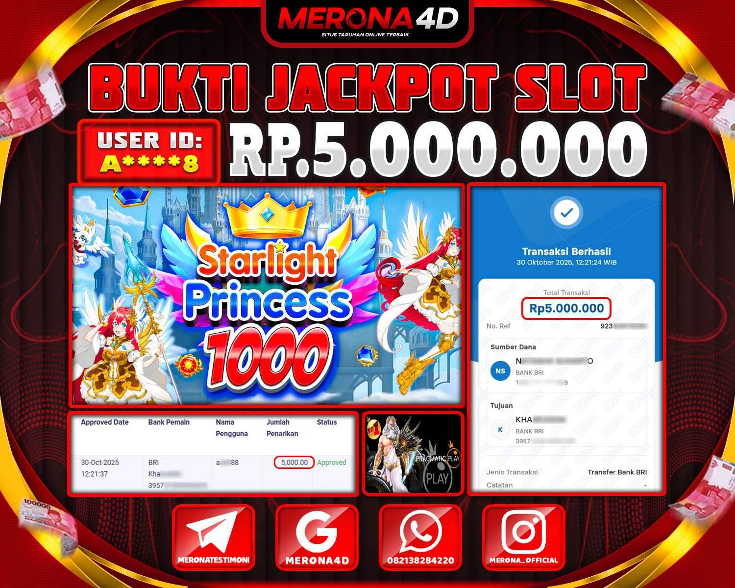Selamat Kepada Member MERONA4D Aβ­‘οΏ½***οΏ½β­‘8 Telah Jackpot Di STARLIGHT PRINCESS 1000