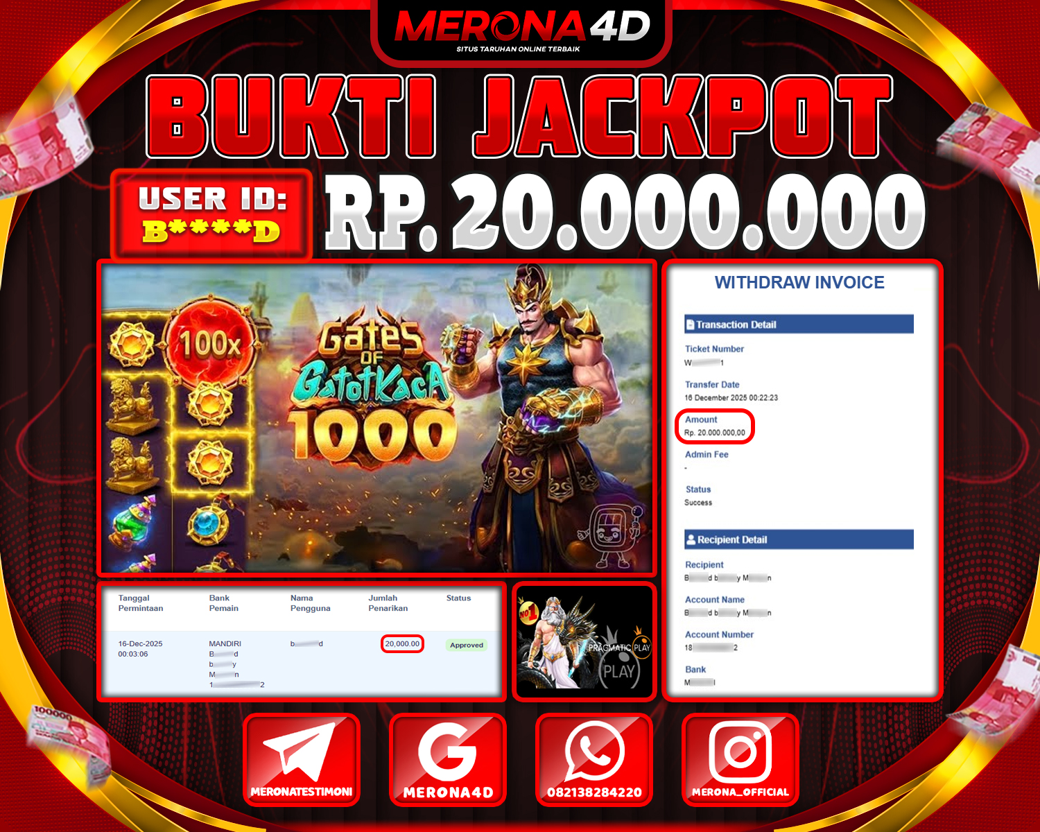 Selamat Kepada Member MERONA4D B****D Telah Jackpot Di GATES OF GATOT KACA 1000