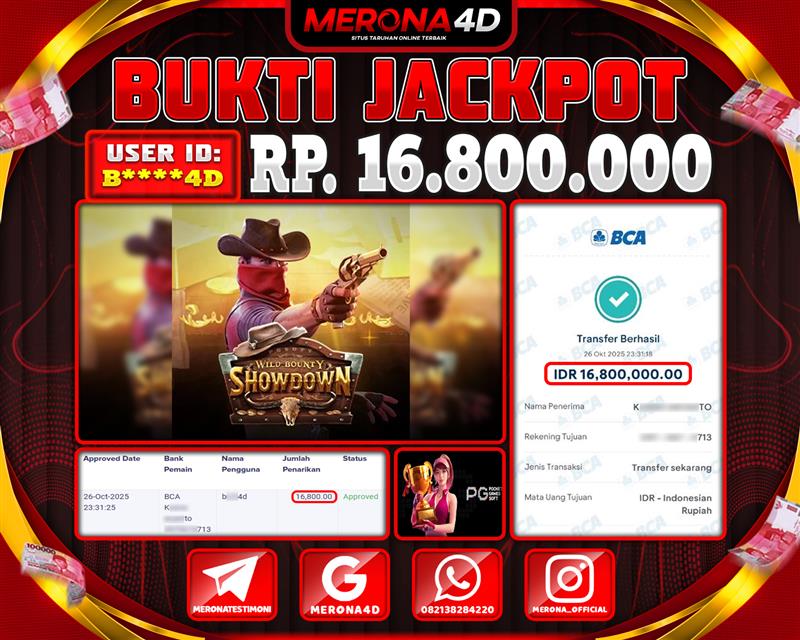 Selamat Kepada Member MERONA4D B*****12 Telah Jackpot Di WILD BANDITO
