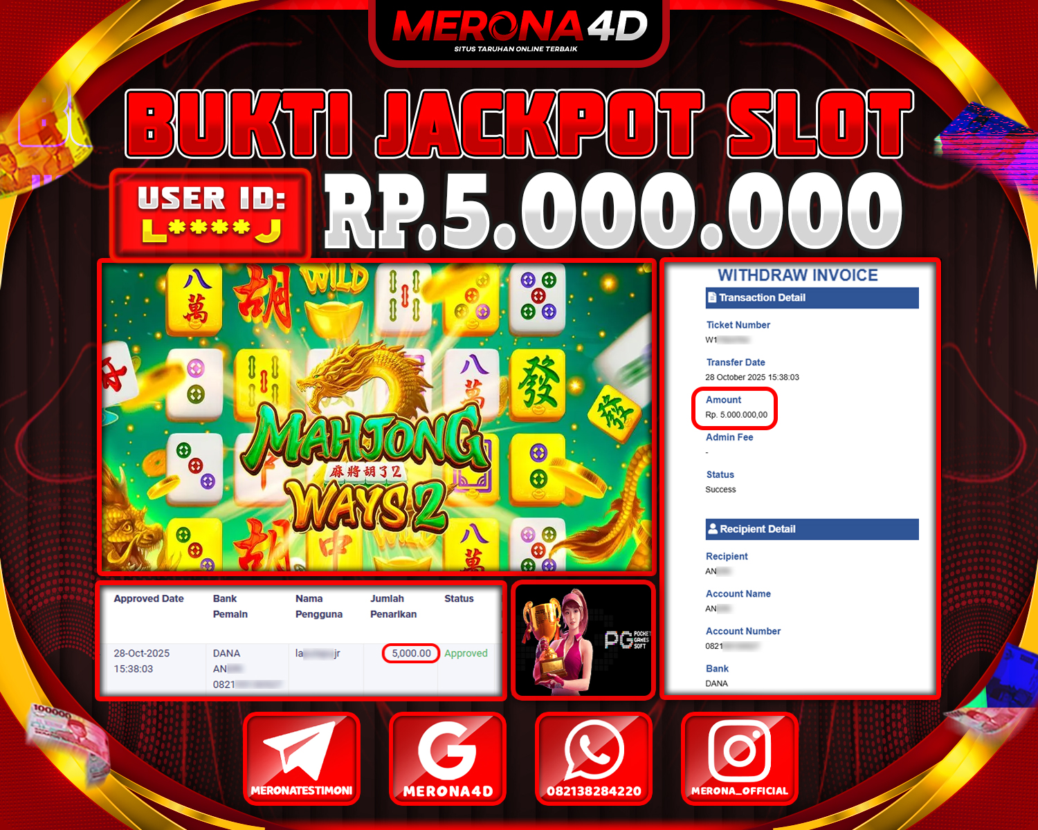 Selamat Kepada Member MERONA4D Lβ­‘οΏ½***οΏ½β­‘J Telah Jackpot Di MAHJONG WAYS 2