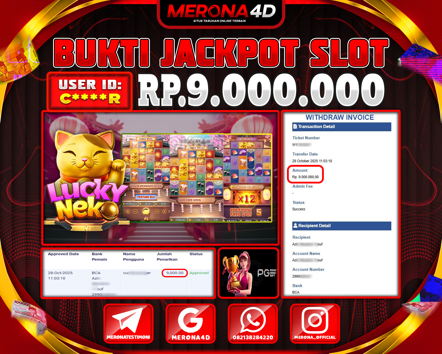 Selamat Kepada Member MERONA4D Cβ­‘οΏ½***οΏ½β­‘R Telah Jackpot Di LUCKY NEKO