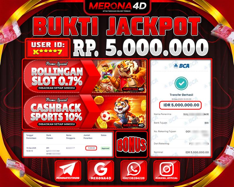 Selamat Kepada Member MERONA4D K*****7 Telah Jackpot Di ROLLINGAN SLOT
