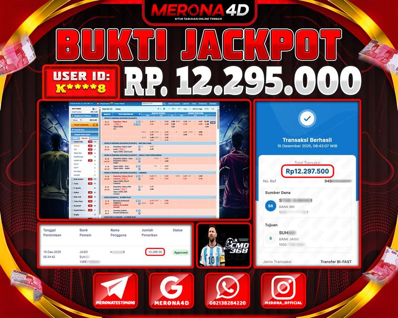 Selamat Kepada Member MERONA4D K*****8 Telah Jackpot Di CMD