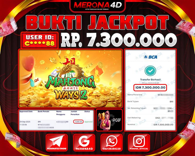Selamat Kepada Member MERONA4D C*****8 Telah Jackpot Di MAHJONG WAYS 2