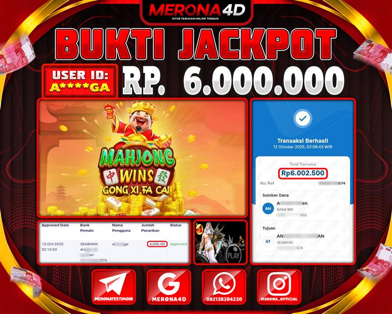 Selamat Kepada Member MERONA4D A*****GA Telah Jackpot Di MAHJONG WINS - GONG XI FA CAI