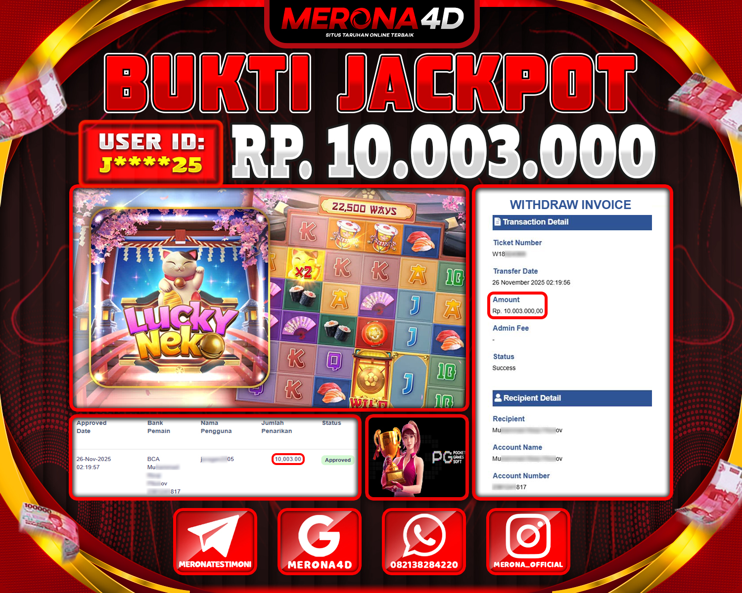 Selamat Kepada Member MERONA4D J*****05 Telah Jackpot Di LUCKY NEKO