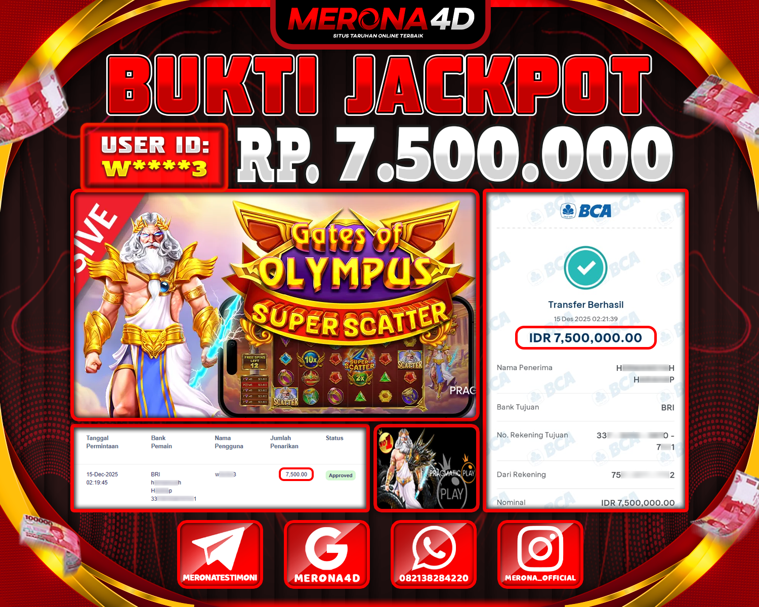 Selamat Kepada Member MERONA4D W****3 Telah Jackpot Di GATES OF OLYMPUS SUPER SCATTER