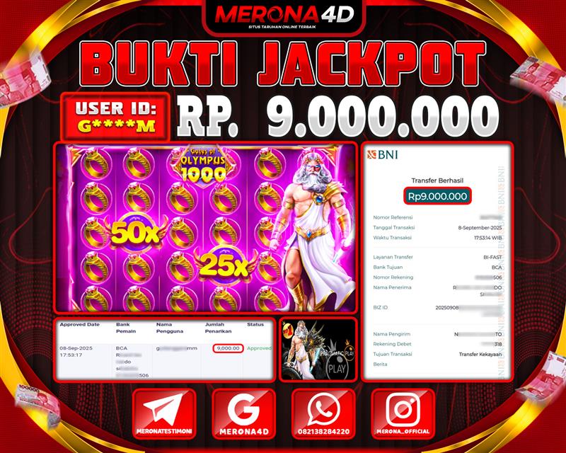 Selamat Kepada Member MERONA4D G*****M Telah Jackpot Di GATES OF OLYMPUS 1000