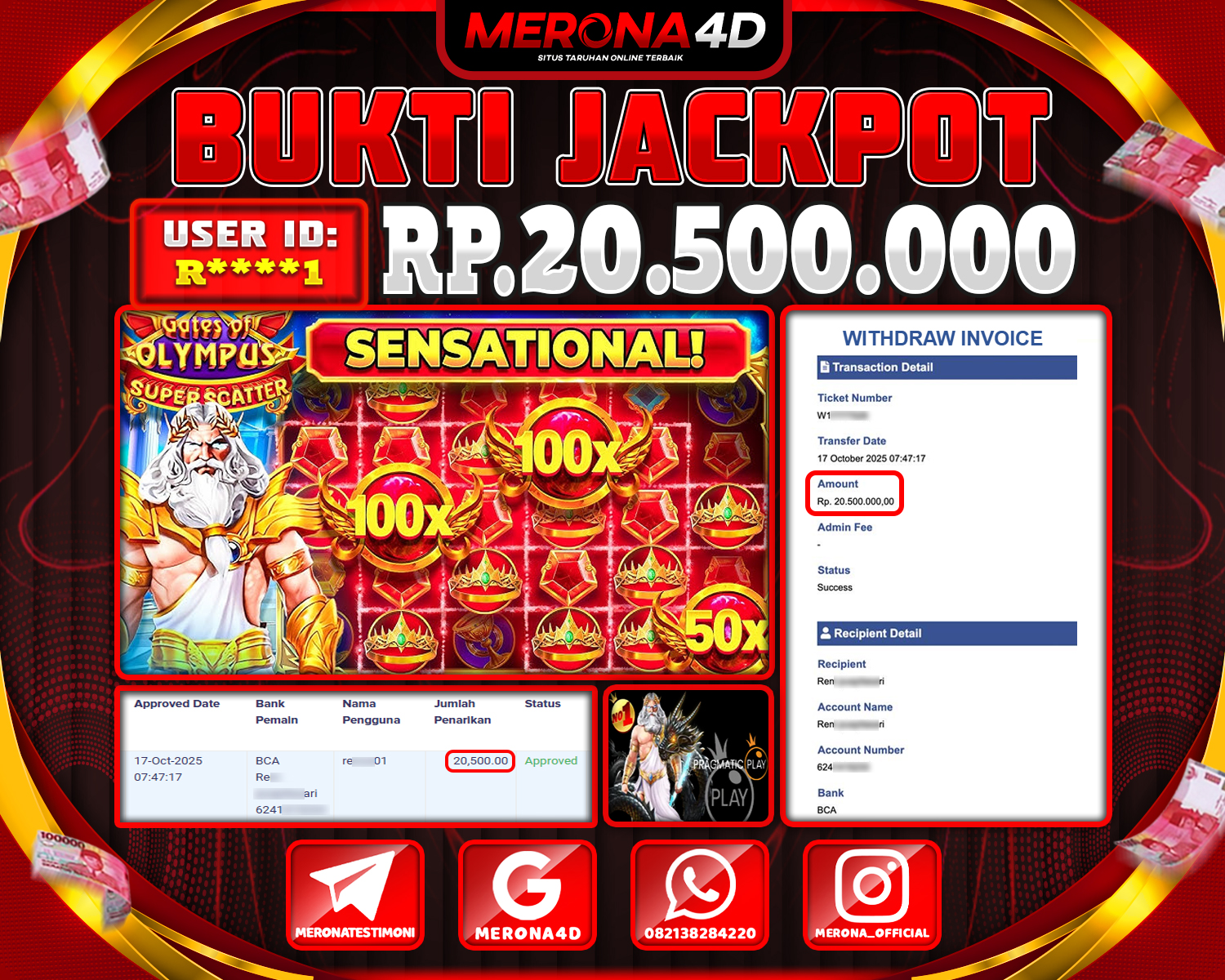 Selamat Kepada Member MERONA4D Rβ­‘οΏ½***οΏ½β­‘1 Telah Jackpot Di GATES OF OLYMPUS SUPER SCATTER