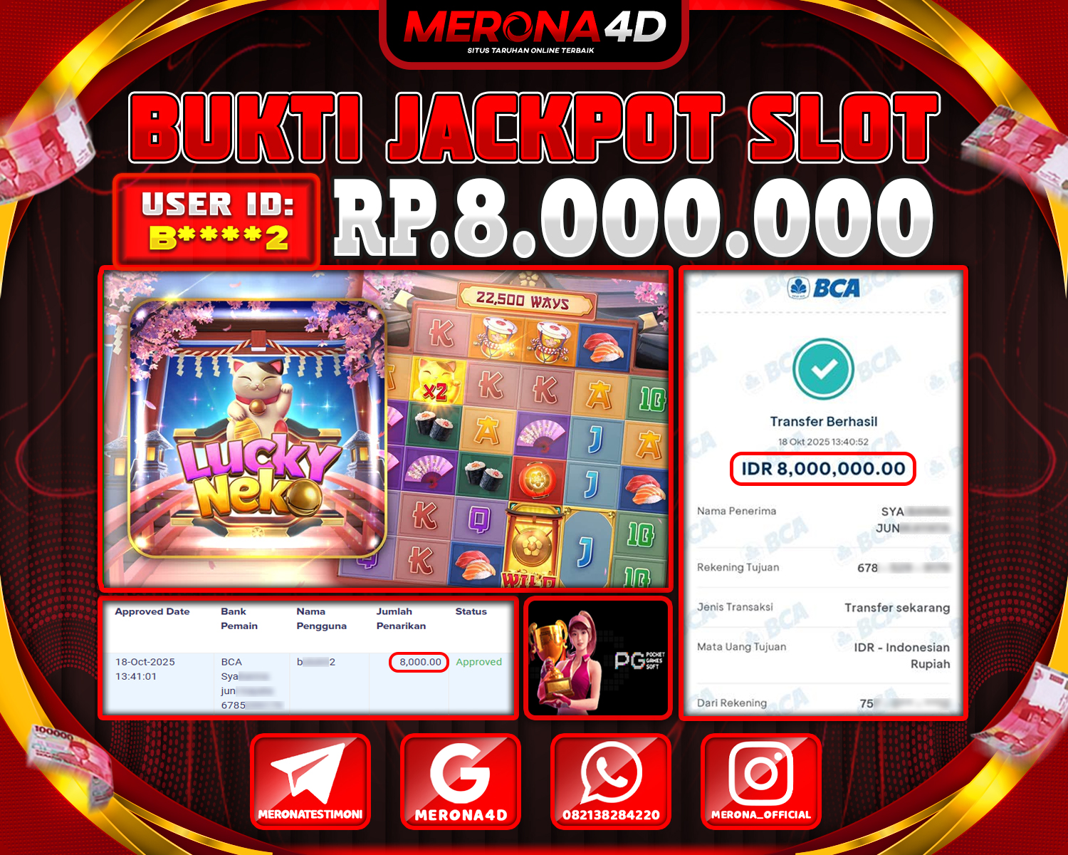 Selamat Kepada Member MERONA4D Bβ­‘οΏ½***οΏ½β­‘2 Telah Jackpot Di LUCKY NEKO