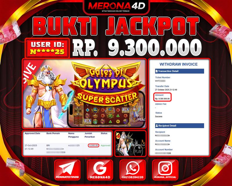 Selamat Kepada Member MERONA4D N*****25 Telah Jackpot Di GATES OF OLYMPUS SUPER SCATTER