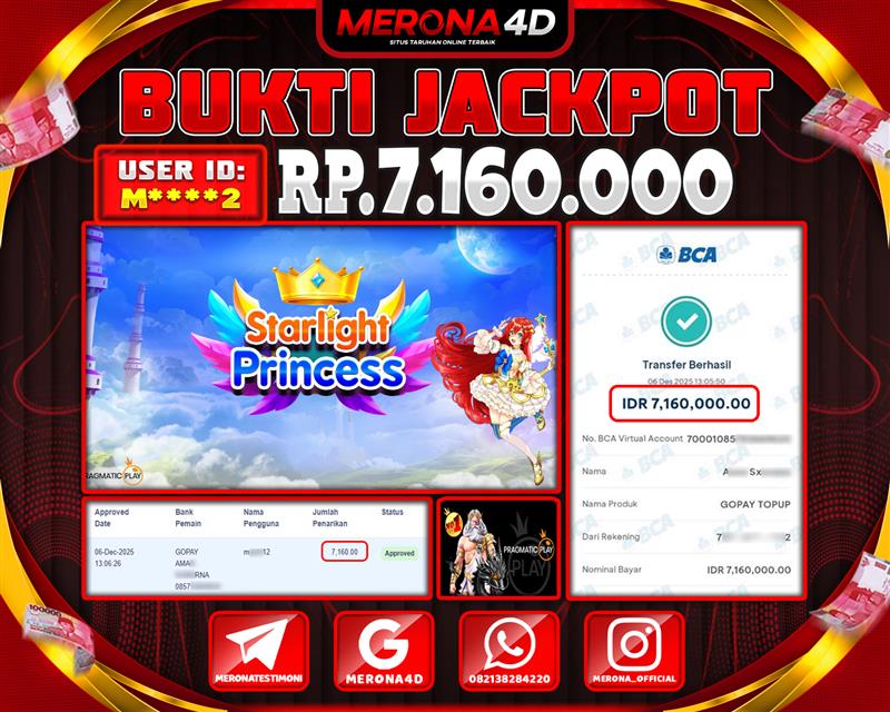 Selamat Kepada Member MERONA4D M*****2 Telah Jackpot Di STARLIGHT PRINCESS