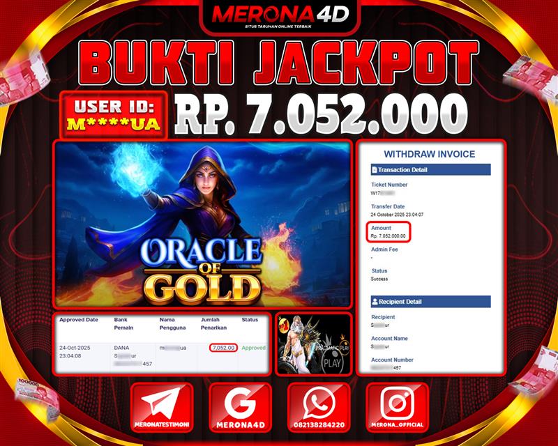Selamat Kepada Member MERONA4D M*****UA Telah Jackpot Di ORACLE OF GOD