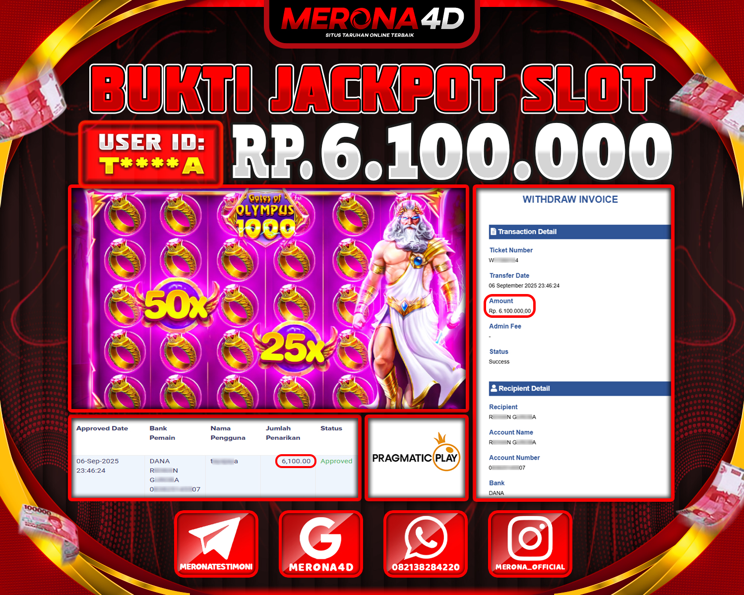 Selamat Kepada Member MERONA4D T****A Telah Jackpot Di GATES OF OLYMPUS 1000