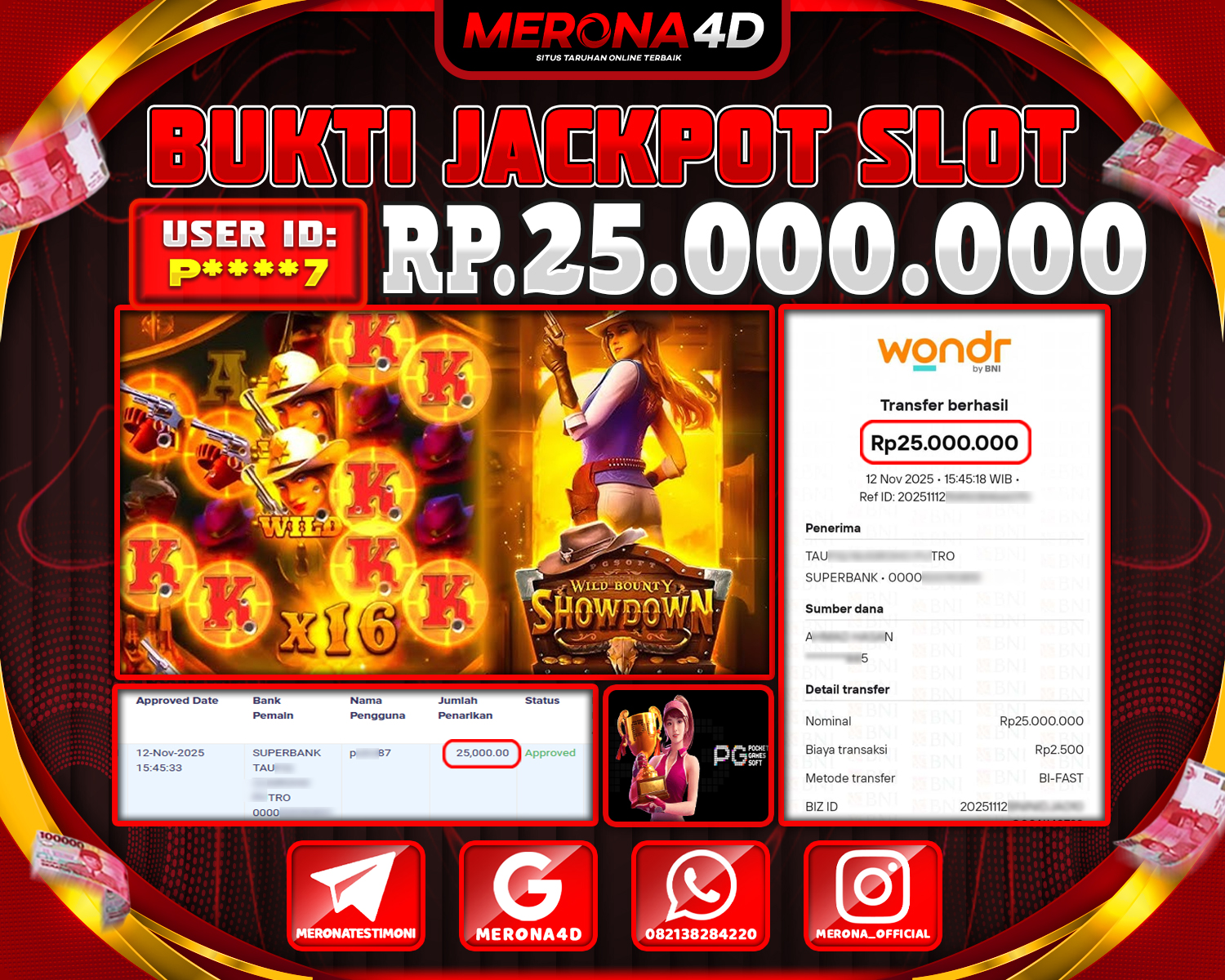Selamat Kepada Member MERONA4D P****7 Telah Jackpot Di WILD BOUNTY SHOWDOWN