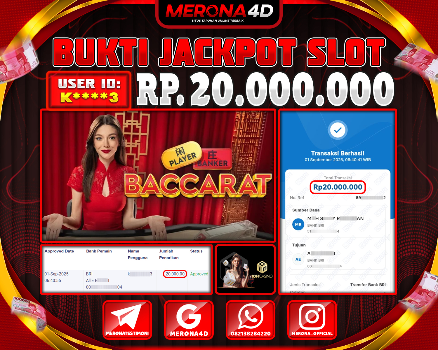 Selamat Kepada Member MERONA4D K****3 Telah Jackpot Di BACCARAT