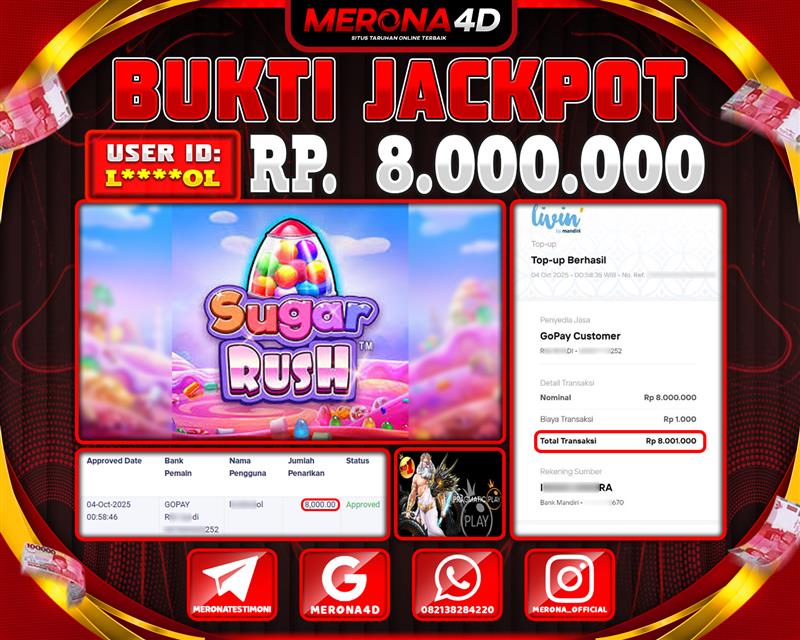 Selamat Kepada Member MERONA4D L*****OL Telah Jackpot Di SUGAR RUSH