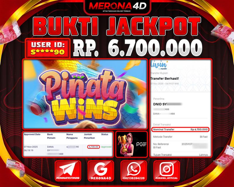 Selamat Kepada Member MERONA4D S*****90 Telah Jackpot Di PINATA WINS