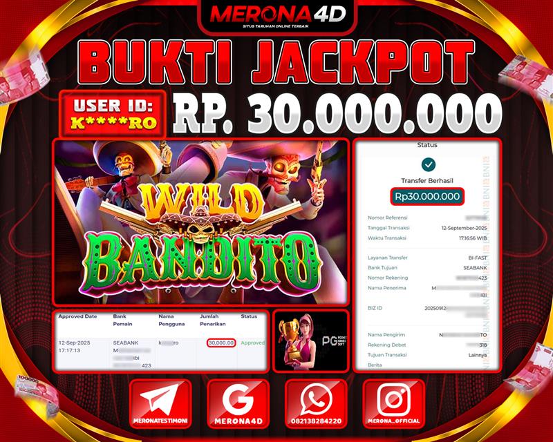 Selamat Kepada Member MERONA4D K*****RO Telah Jackpot Di WILD BANDITO