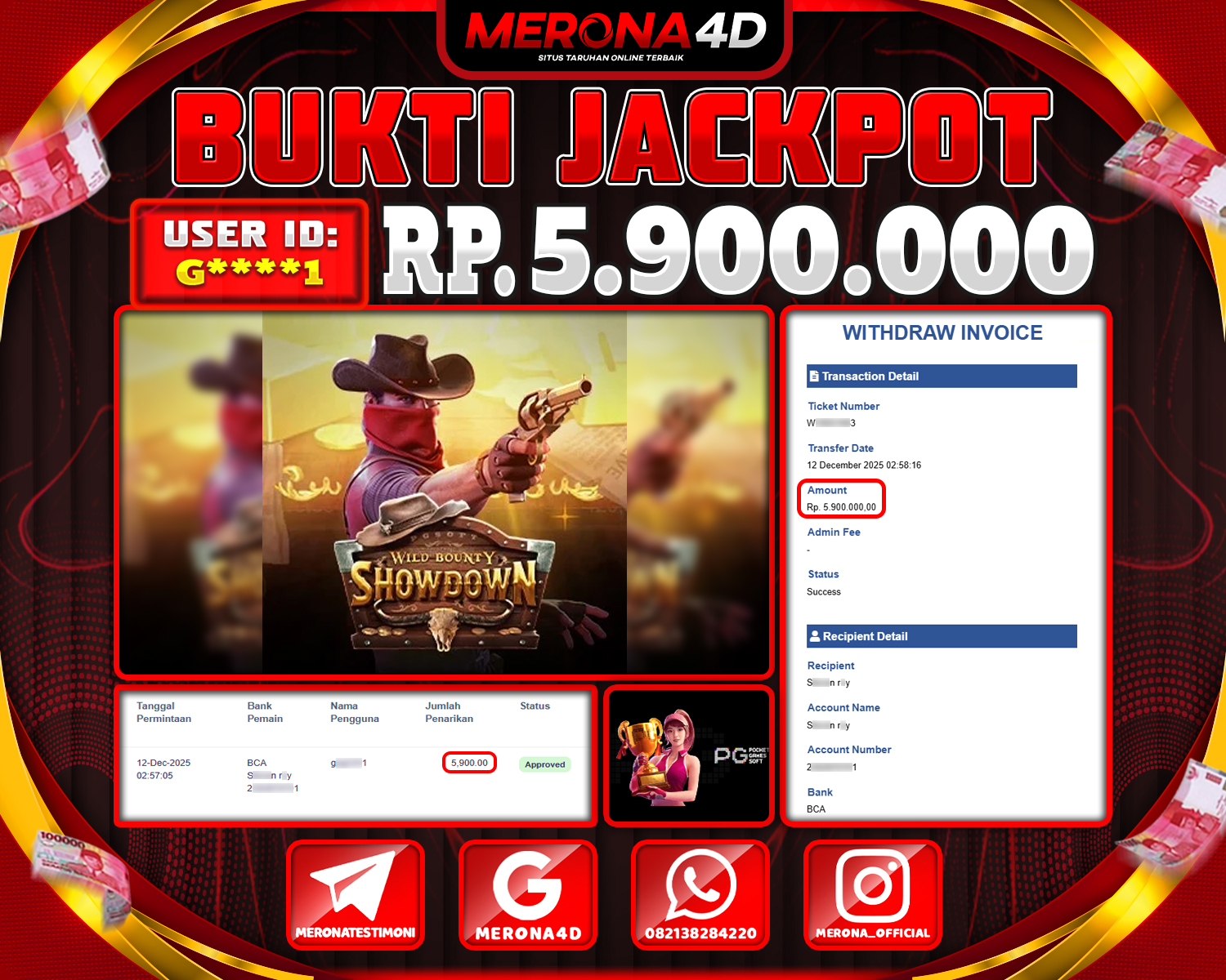 Selamat Kepada Member MERONA4D G****1 Telah Jackpot Di WILD BOUNTY SHOWDOWN