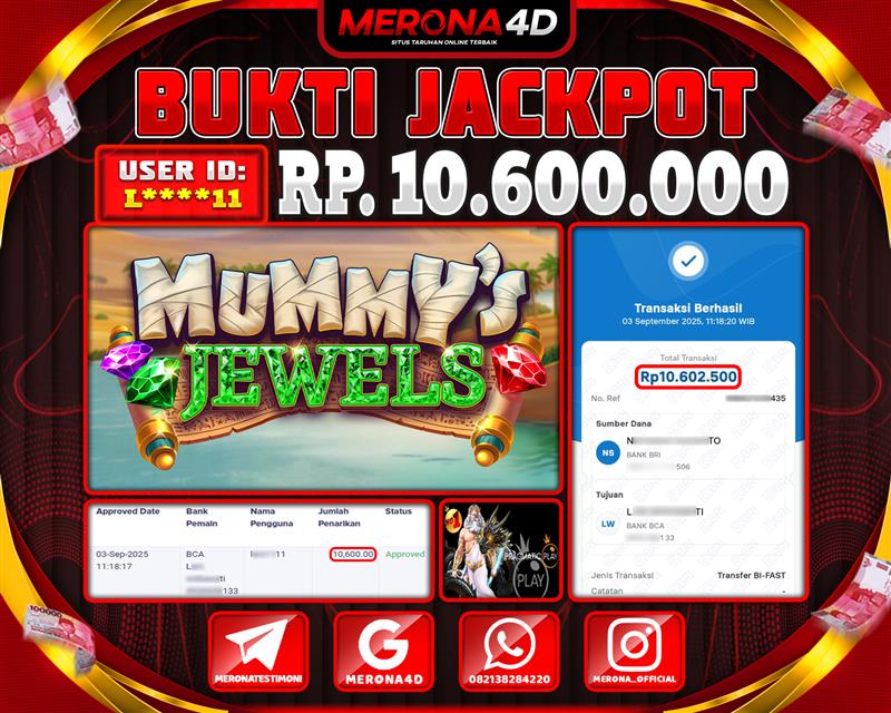 Selamat Kepada Member MERONA4D L*****11 Telah Jackpot Di MUMMY'S JEWELS