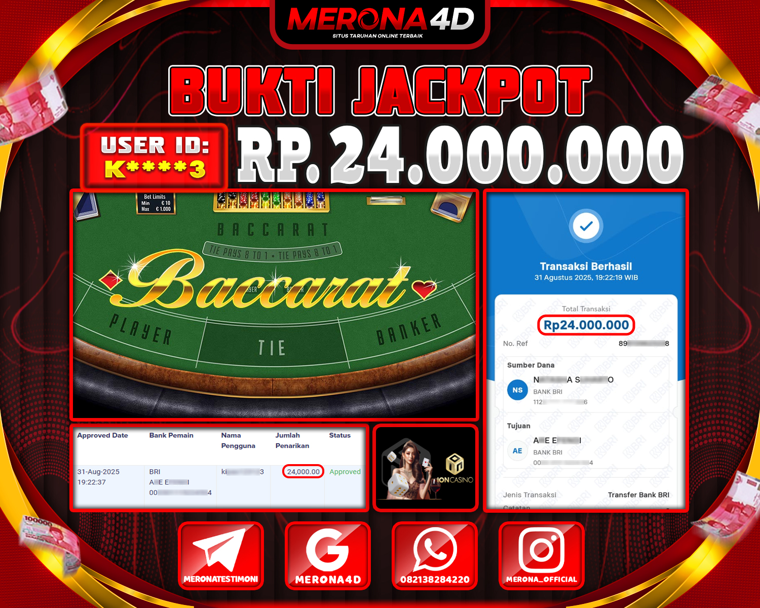 Selamat Kepada Member MERONA4D K*****3 Telah Jackpot Di BACCARAT ( ION CASINO )