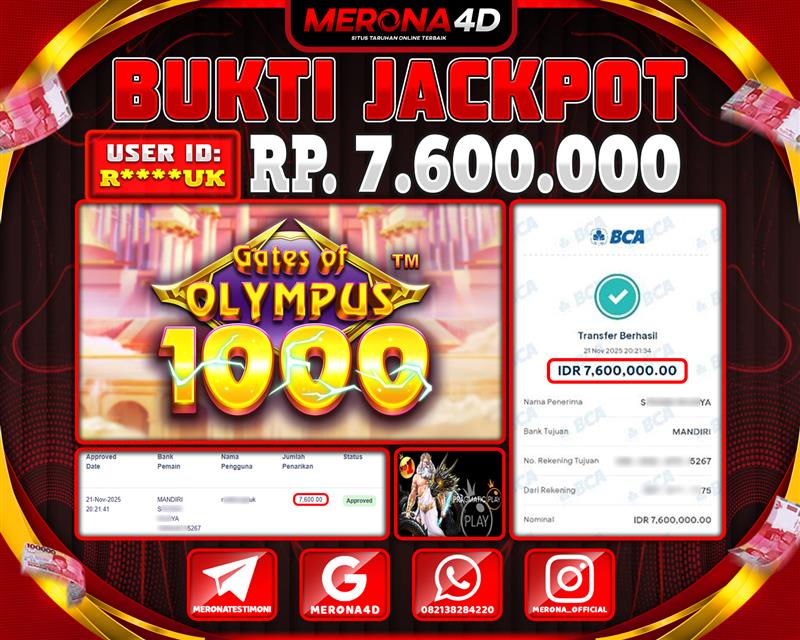 Selamat Kepada Member MERONA4D R*****UK Telah Jackpot Di GATES OF OLYMPUS 1000