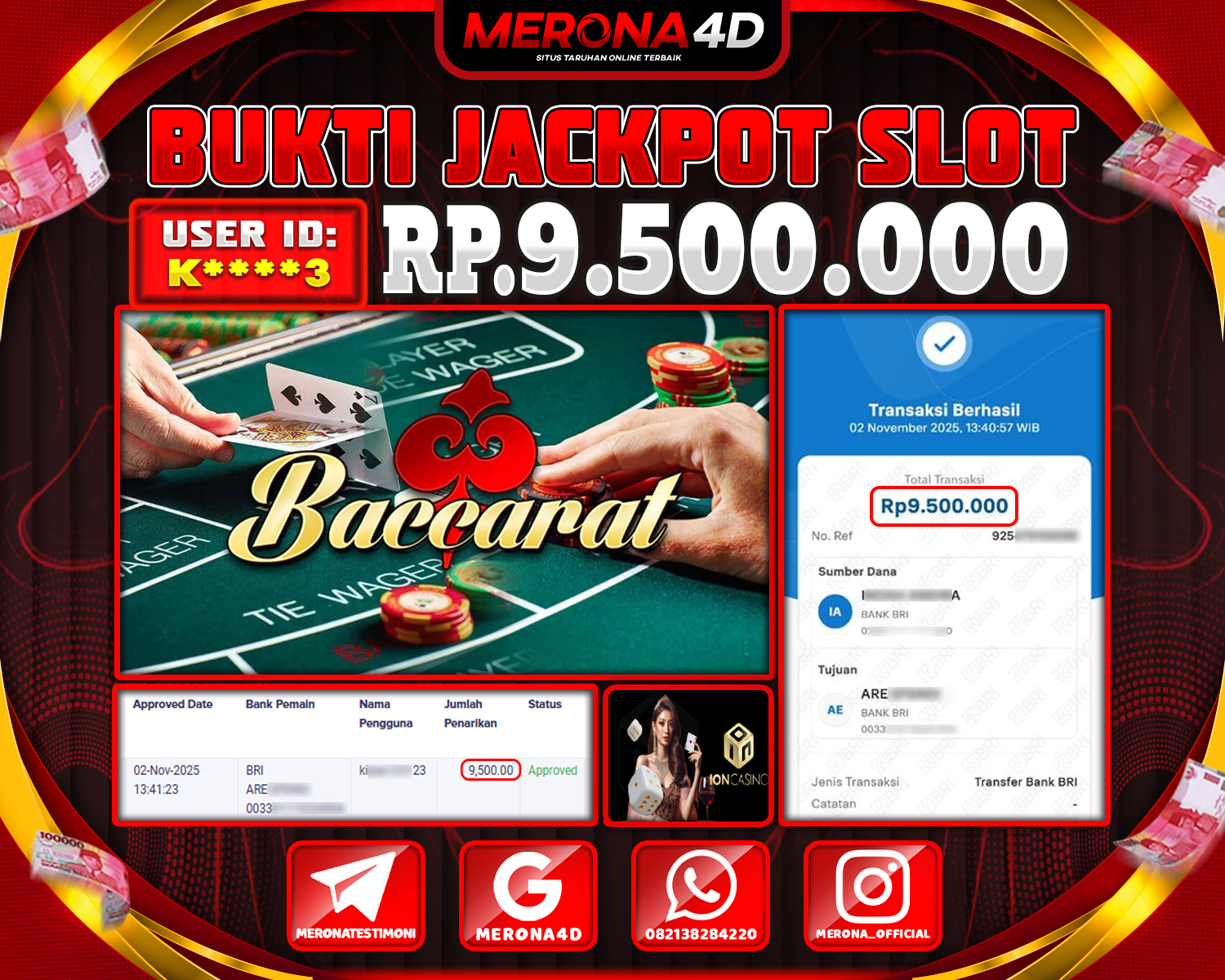Selamat Kepada Member MERONA4D Kβ­‘οΏ½***οΏ½β­‘3 Telah Jackpot Di BACCARAT