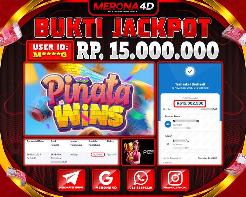 Selamat Kepada Member MERONA4D M*****G Telah Jackpot Di PINATA WINS