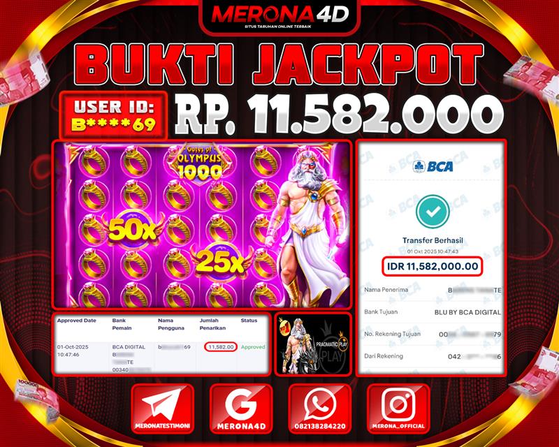 Selamat Kepada Member MERONA4D B****9 Telah Jackpot Di GATES OF OLYMPUS 1000