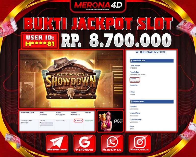 Selamat Kepada Member MERONA4D H*****81 Telah Jackpot Di WILD BOUNTY SHOWDOWN