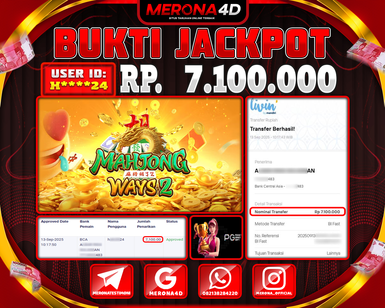 Selamat Kepada Member MERONA4D L****9 Telah Jackpot Di MAHJONG WAYS