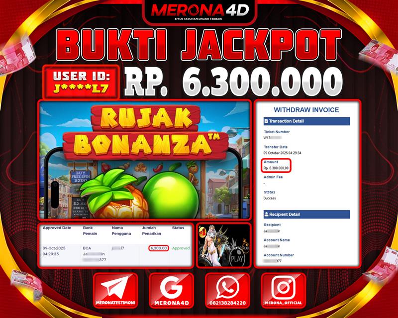 Selamat Kepada Member MERONA4D J*****L7 Telah Jackpot Di RUJAK BONANZA