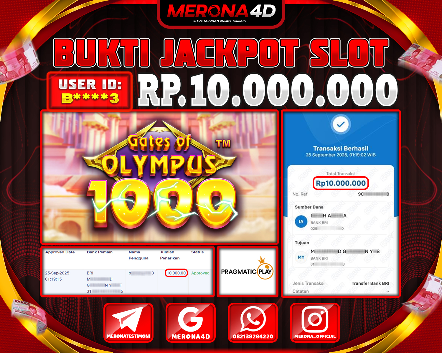 Selamat Kepada Member MERONA4D B****3 Telah Jackpot Di GATES OF OLYMPUS 1000