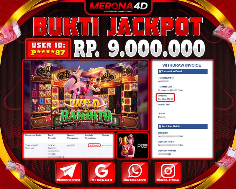 Selamat Kepada Member MERONA4D P*****87 Telah Jackpot Di WILD BANDITO