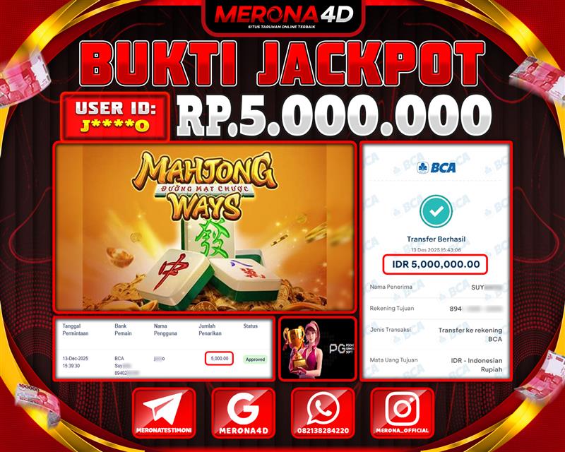 Selamat Kepada Member MERONA4D J*****O Telah Jackpot Di MAHJONG WAYS