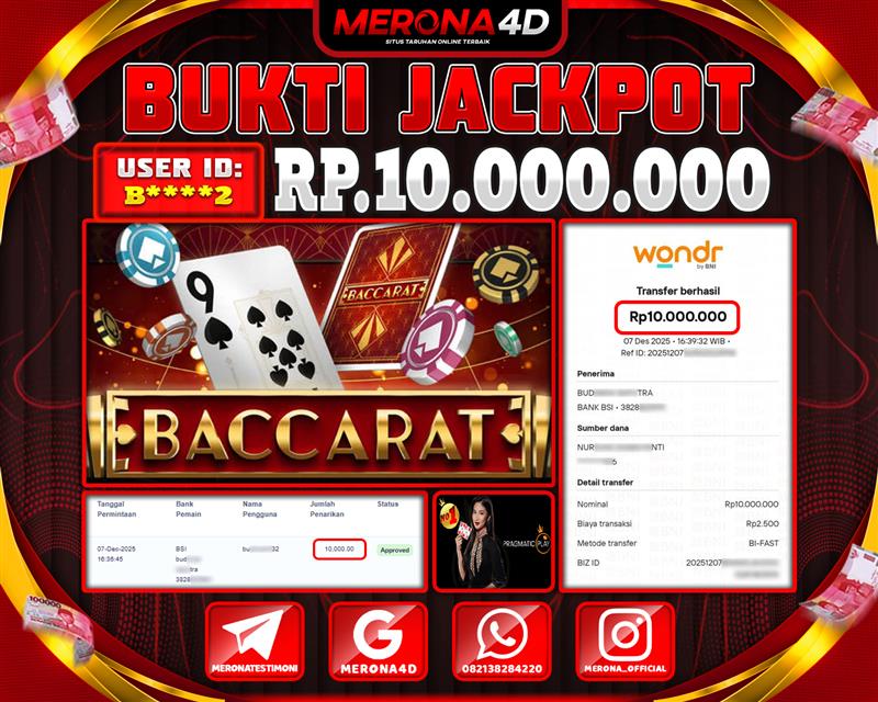 Selamat Kepada Member MERONA4D B*****2 Telah Jackpot Di BACCARAT