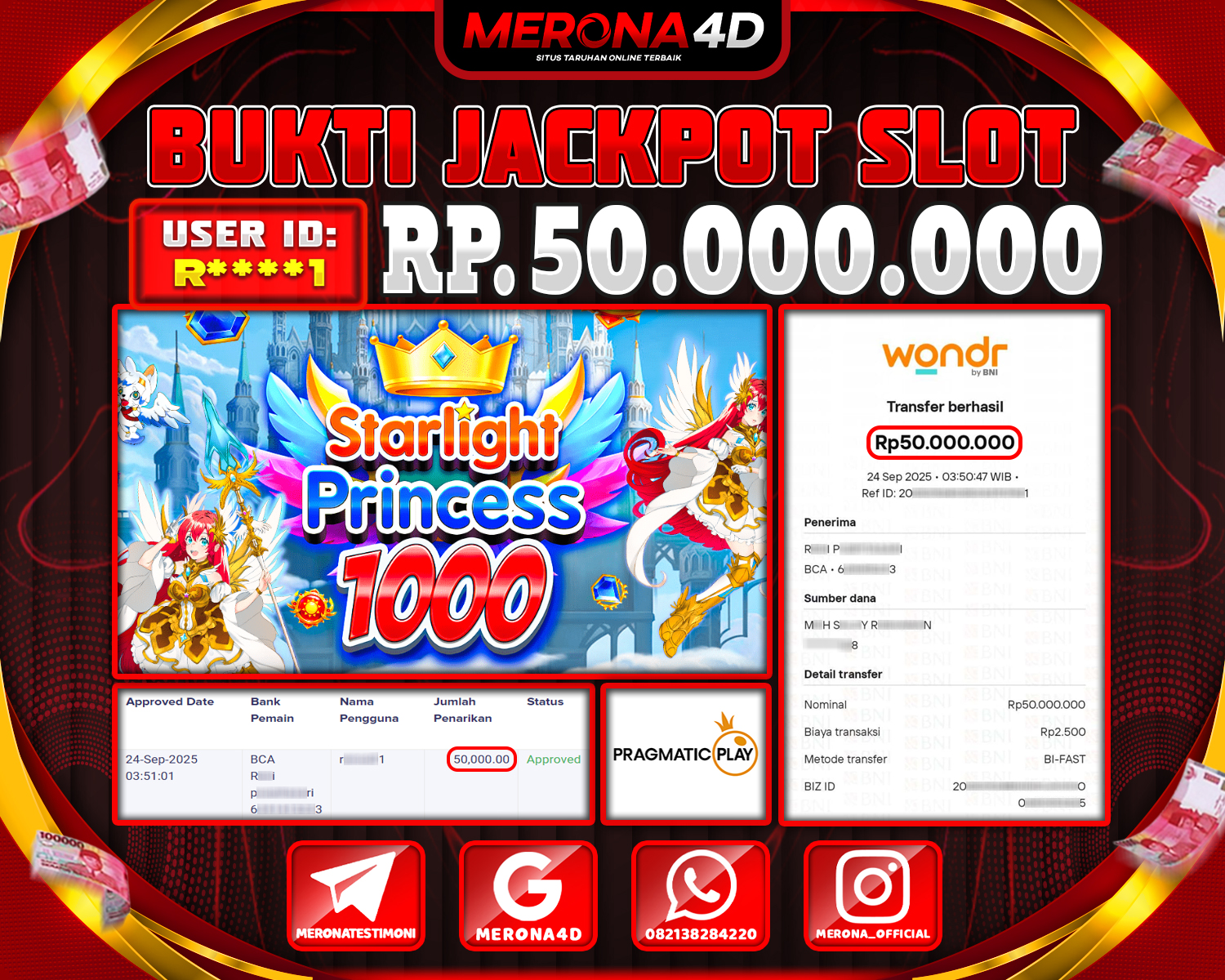 Selamat Kepada Member MERONA4D R****1 Telah Jackpot Di STARLIGHT PRINCESS 1000