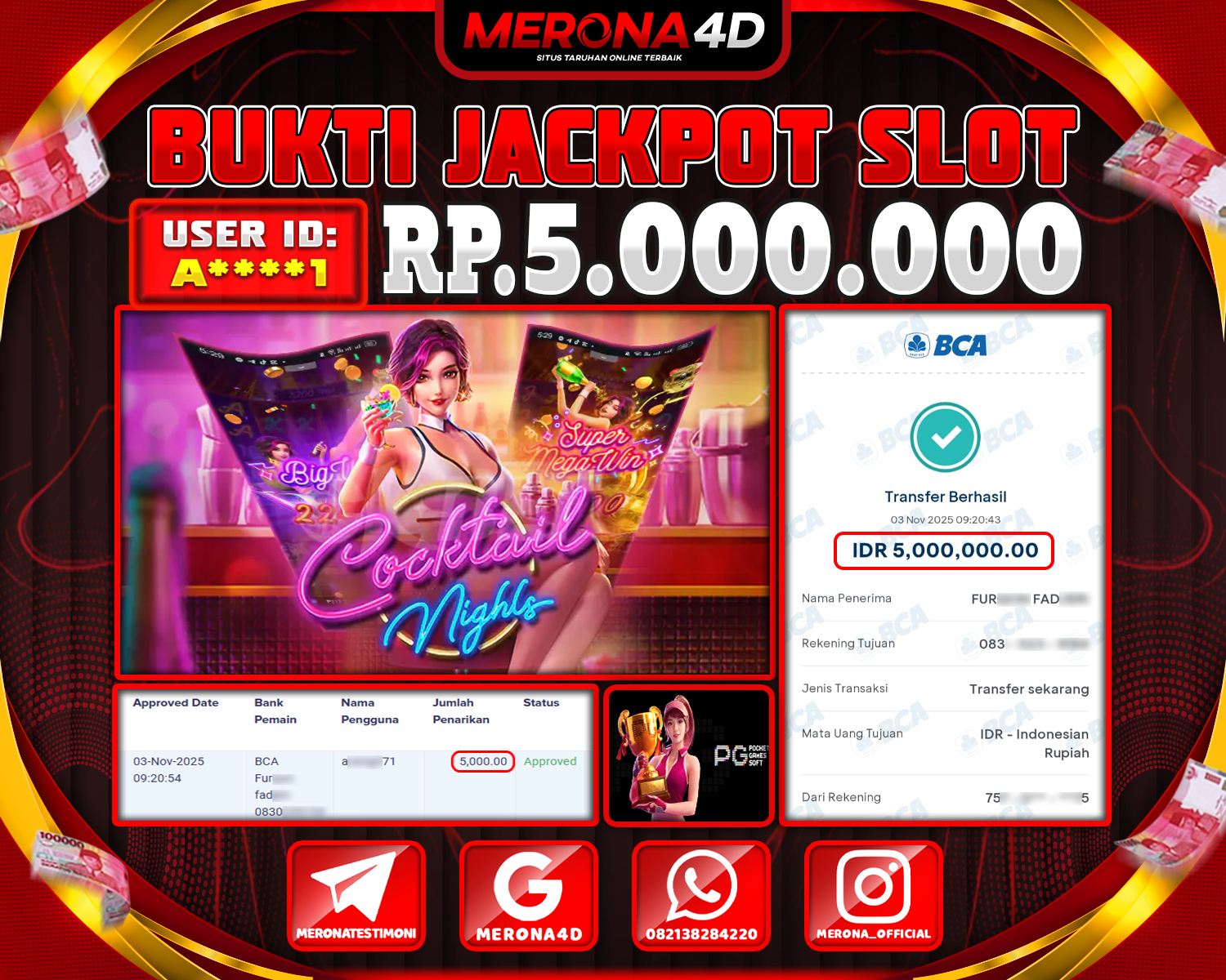 Selamat Kepada Member MERONA4D Aβ­‘οΏ½***οΏ½β­‘1 Telah Jackpot Di COCKTAIL NIGHTS