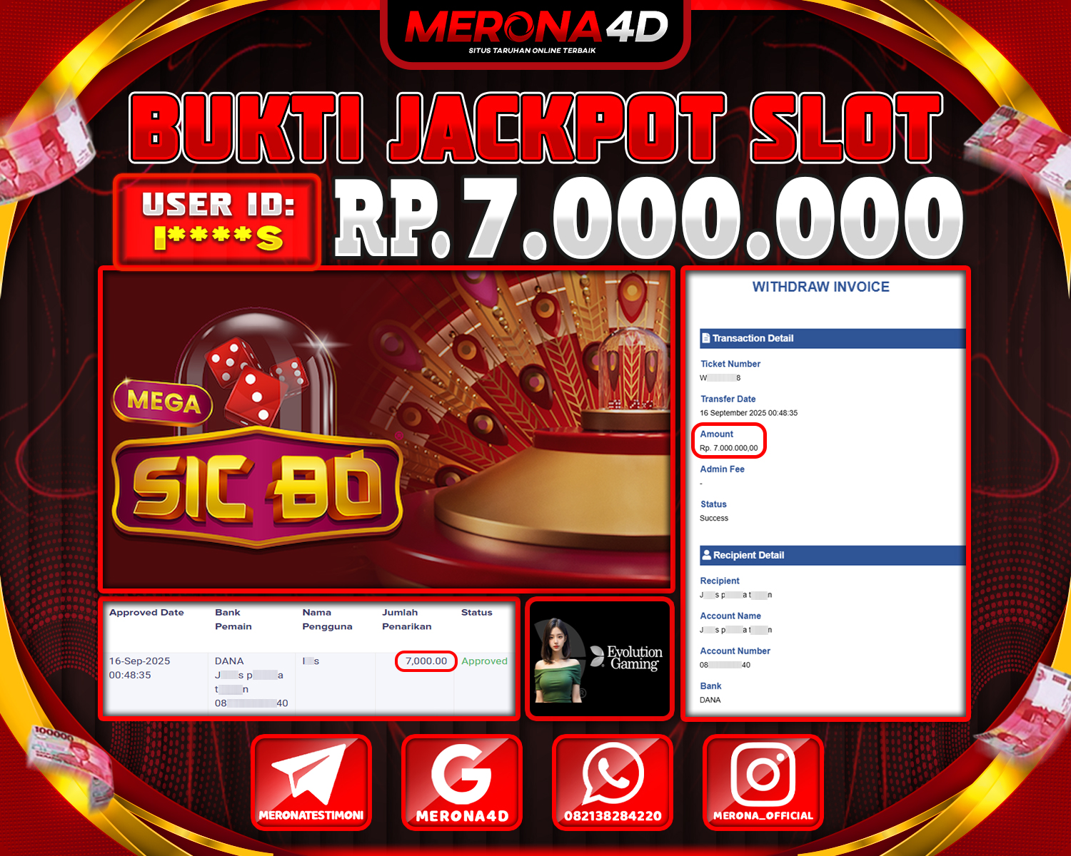 Selamat Kepada Member MERONA4D I****S Telah Jackpot Di SICBO
