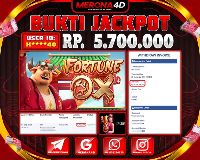 Selamat Kepada Member MERONA4D H*****40 Telah Jackpot Di FORTUNE OX