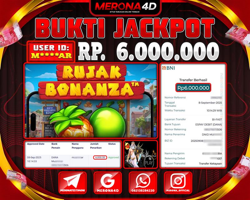 Selamat Kepada Member MERONA4D M*****AR Telah Jackpot Di RUJAK BONANZA