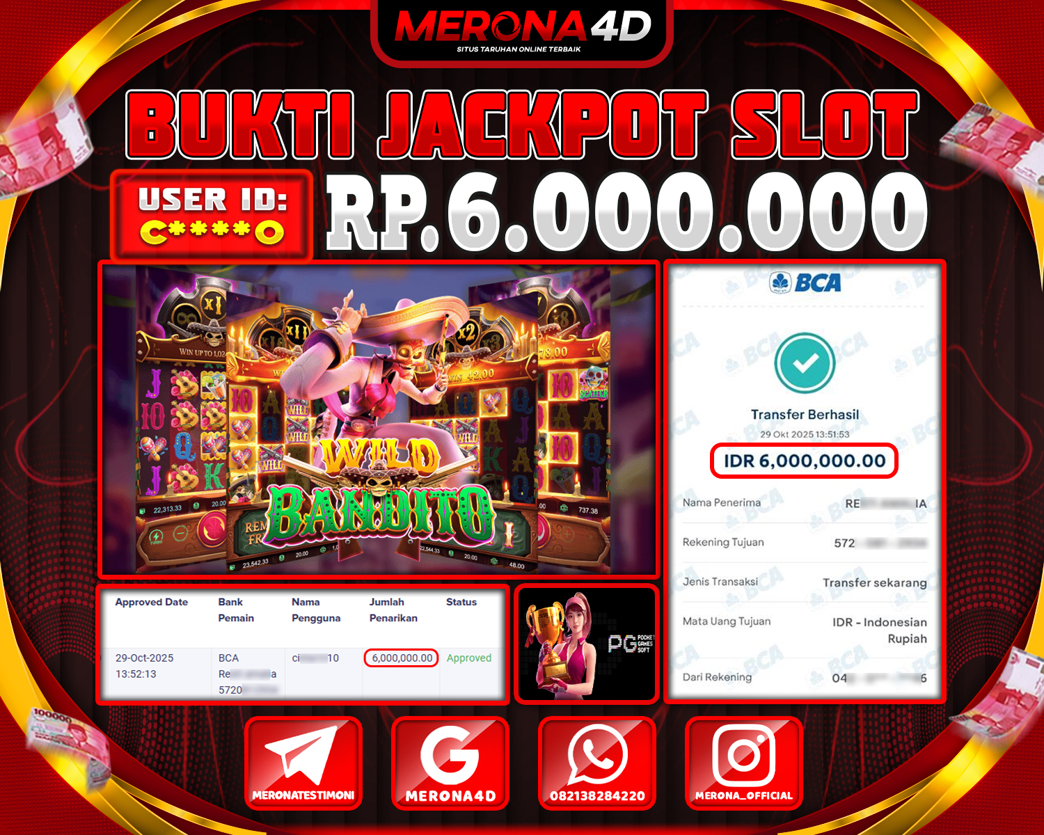Selamat Kepada Member MERONA4D Cβ­‘οΏ½***οΏ½β­‘0 Telah Jackpot Di WILD BANDITO