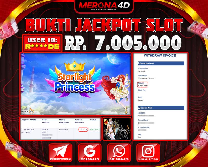 Selamat Kepada Member MERONA4D R*****DE Telah Jackpot Di STARLIGHT PRINCESS